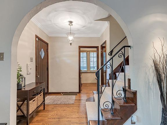 This ideal home in Wydown Forest has historic charm and updates galore. Main level is ready for entertaining with hardwood floors and natural light. Custom kitchen with Wellborn cabinets, Cambria counter tops, and Samsung refrigerator and gas range from January 2020. Custom bathroom with marble flooring, a 42-inch vanity, Cambria countertops, Delta rainfall showerhead, Onyx shower panels, updated plaster wall finish and tile wainscoting in September 2020. Also included new plumbing from the fixtures in the bathroom and kitchen. New plumbing stack, electric panel upgraded and wiring updated (2019), new doors, fresh paint, rear fencing, new retaining wall and front steps (2019), Custom wrought iron handrailing on front (2019) and balcony (2021). Concrete tile roof is approximately 15 years old. Upstairs has 3 bedrooms and a full bath. Primary bedroom has replaced Juliet balcony and french doors. Dual zoned HVAC, downstairs has air filtration system as well. Convenient walkable location!