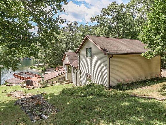 Fisherman's paradise on Cordry Lake! Large home on 4 LAKEFRONT LOTS! 2800 sq foot, 2 bed, 3 baths. Screened porch, large main level deck and a 22x14 lower level study- all conveniently located on the lakeside! Easy walk w/ just a few very gradual steps to big cove water w/oversized 20 foot party deck with 2 boat lifts. 2 kitchens, awesome spa room wrapped in cedar (well maintained hot tub stays) and the luxury of a 23x23 BONUS ROOM. Bonus room offers a custom cedar built closet. 2 car attached garage and a 2 car detached garage. Plenty of storage! Whole home central vac system, GEO THERMAL, upper kitchen offers flexibility for large family and friends to gather. The main level is set up for handicap accessible.New LEAF GUARD, too.