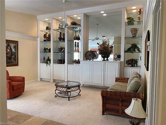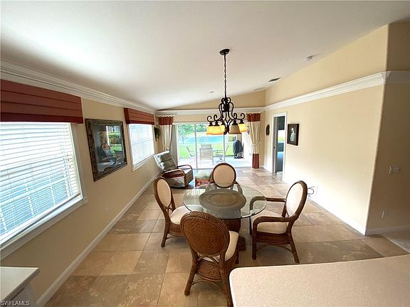 For annual rental in the gated, resort community of Veronawalk is this partially furnished, two bedroom/two bath with den attached villa. This clean, open concept unit with vaulted ceiling offers a split floorplan. Flooring is a mix of neutral tile and carpet. A centrally located kitchen faces the living room featuring a wall length entertainment center with an abundance of storage. A full laundry room with wash sink has even more storage cabinets and a large closet. Outdoors is a screen enclosed lanai overlooking a grassy expanse and water inlet. Veronawalk's town center offers a vast assortment of amenities. All within walking distance is a cafe, ice cream shoppe, hair salon and town hall building containing activities rooms and ballrooms. The community has its own post office, gas station and car wash for added convenience. A resort pool, lap pool, full fitness center and pickleball/ tennis courts with miles of jogging/walking trails can keep you as active as you please. This well-maintained home offers truly delightful living.