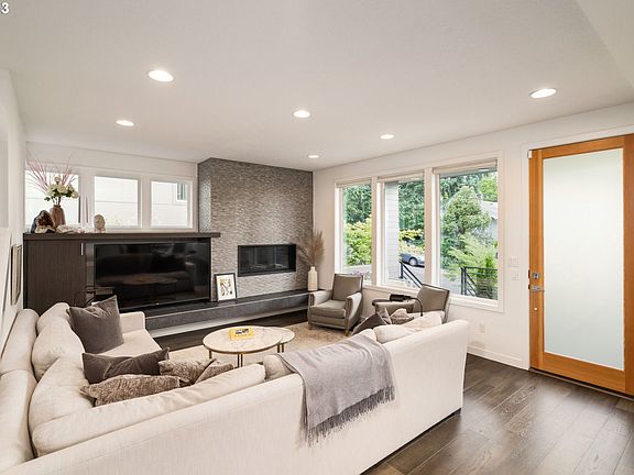 Contemporary and Gorgeous -- In the heart of Multnomah Village. Easy living at this Beautiful Earth Advantage Platinum certified home, where you can walk to your favorite parks, restaurants & shops. Bright and open, with high ceilings, Luxury finishes and custom built-ins throughout. This home is ideal for entertaining, inside and out, with covered deck space and level, fenced back yard. Come relax in the fabulous primary suite with high ceilings and spa-like ensuite, with soaking tub, tiled walk-in shower, and walk-in closet. 2 more large bedrooms (light and bright with great views). *Option for a 4th bedroom (no closet. currently used as a gym). Love your wine? Don't miss the wine storage. Slab waterfall countertop & stainless appliances. Easy maintenance, and fully landscaped. Oversized Garage has plenty of storage space and EV plug. [Home Energy Score = 8. HES Report at https://rpt.greenbuildingregistry.com/hes/OR10181223]