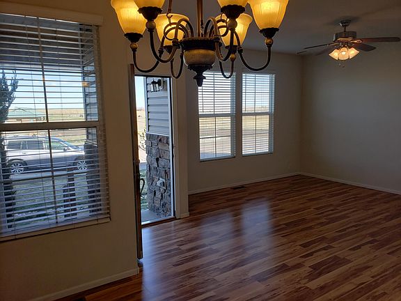 2-car garage, A/C. Laminate flooring on main level; new carpet upstairs. Laundry room on upstairs level. Community park across street. Very close to shopping, easy access to Ft. Carson, I-25, and Powers Blvd. Trash included in complex. No pets.