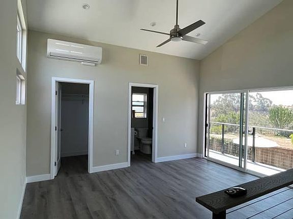 Private 1 bedroom 1.5 bath two story apartment (Accessory Dwelling Unit or "ADU"/ aka "granny flat") located in a quiet northwest Mira Mesa. This newly built ADU is approx. 650 square feet with two levels, and is attached to the main house, but has a separate entrance and lockable gate. Rent is $2550 month-to-month with utilities included. Move-in date of July 1, 2022 (or possibly sooner) Features: Ground level- living area with full kitchen, walk in closet, half bath with washer/dryer. Private fenced outdoor space roomy enough for patio table, BBQ, and small garden. Upstairs- Large airy bedroom with high vaulted ceiling, bathroom/shower, walk in closet, balcony with canyon view. - Full size kitchen fully equipped with brand new appliances -Heating/cooling both downstairs and upstairs -All utilities included (electric, gas, water, high speed internet) -Parking available on street (plenty of space) No Drugs. No Smoking. No Pets. No Party animals. Overnight guests are OK with a maximum of 2 nights per week. Application requires: $45 application fee (paid by applicant-and will be deducted from 1st month rent), credit check, proof of income, background check Move-in requires: First and last month's rent, plus security deposit I prefer initial contact via email - no calls or texts until further along in application process. I run a business full time and calls/texting are distracting. With email, I can manage information/communication better. Thanks for understanding. Please send an email to tell us a little about yourself, how long you plan to rent, and what days/times you can come have a tour. Let us know if you have any questions, and thanks for considering! Usual showing times: Mondays-Fridays between 4pm-7pm, Weekends flexible. Month to month lease Move in requires 1st and last month's rent, plus $2,000 security deposit Monthly rent includes electric, gas, water, internet, and trash/recycling service Application fee will be deducted from first month's rent No pets, no smoking 650 or higher credit score Monthly gross income 7,650 or higher No evictions or bankruptcies Landlord reference check I prefer initial contact via email - no calls or texts until further along in application process. I run a business full time and calls/texting are distracting. With email, I can manage information/communication better. Thanks for understanding. Please send an email to tell us a little about yourself, how long you plan to rent, and what days/times you can come have a tour. Let us know if you have any questions, and thanks for considering! Usual showing times: Mondays-Fridays between 4pm-7pm, Weekends flexible.