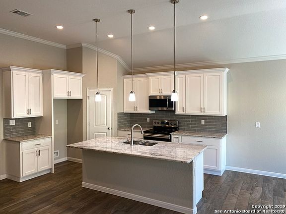 Beautiful new one story 3 bedroom 2.5 bath home. Open floor concept with 11 ft. ceilings. Master bedroom with walk-in closet, separate shower & roman tub. Tile in living areas & carpet in bedrooms. Custom cabinets with granite countertops throughout home. Home warranty included with many more extras!! You won't want to miss this opportunity to live in a great location w/ easy access to I-35 & Loop 1604, The Forum, Costco, Randolph AFB & more!