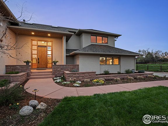 Nestled amidst the serene countryside lies 7639 Crestview Dr. A picturesque home that embodies the essence of tranquility and sustainability. Set on a spacious lot, this home offers breathtaking views of the majestic Long's Peak and the Front Range. Approaching the property, a sense of harmony with nature envelops you. The architecture seamlessly blends with the surrounding landscape, utilizing natural materials like stone and wood to create a warm and inviting exterior. The sprawling lot extends from the front porch, inviting relaxation and outdoor activities under the vast Colorado sky continue on the back patio and yard. As you step inside, the interior exudes an ambiance of modern comfort fused with traditional Colorado charm. Large windows along with the picturesque view of Long's Peak in the distance. Sunlight streams in freely, illuminating the space and highlighting the openness of this home. The heart of the home is a spacious living area, adorned with a two sided stone fireplace that adds a touch of coziness. Adjoining this space is a gourmet kitchen, equipped with state-of-the-art appliances and ample counter space for culinary endeavors. A large island beckons for casual gatherings while doors lead out to the side deck and patio, perfect for alfresco dining and enjoying the beauty of the surroundings. In keeping with the commitment to sustainability, this home boasts a solar system to power the household. Energy-efficient features throughout ensure minimal environmental impact while maximizing comfort and functionality. Utilities remain low throughout the year. This home is not just a residence; it's a sanctuary where modern comforts harmonize with the natural beauty of Colorado, offering a lifestyle of peace, sustainability, and connection with the land. Minutes to both downtown Niwot and Longmont- perfect location.