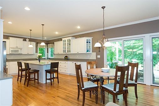 A spectacular, wooded lot is the setting for this gorgeous custom-built home with large rooms and beautiful decor throughout. The gourmet kitchen boasts an expansive island with a new granite top and a brand new stainless steel refrigerator. White cabinets with raised panels, hardwood flooring, corian counters and a planning desk complete the fully-applianced kitchen. The elegant dining roomis the perfect spot for entertaining two or twenty. The private 1st floor master bedroom includes a cozy sitting area. Relax and refresh in the deluxe master bath with jetted tub, over-sized shower, double bowl vanity, walk-in closet and water closet. A king-sized bedroom withprivate bath on the second floorcould easily be a 2nd master or guest suite.The two additional bedrooms are connected by a Jack and Jill bath. A big second floor bonus room adds lots of flexible living space. The covered rear porch and paver patio provide a wonderful outdoor living area. Enjoy the beautiful, peaceful views!