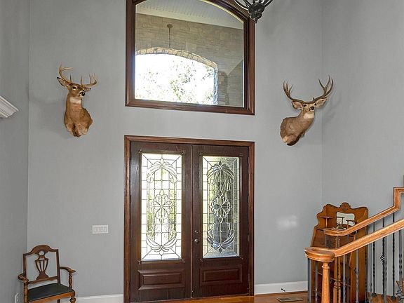 Gorgeous, +/- 4479 Sq. Ft. Custom Home is 1.5 Stories. Gated. 41+/- acres! 5 Enormous Bedrooms w/Walk-in Closets. 4.5 Baths. Huge Dining Room w/Hardwoods. 2-Story Great Room w/Lighted Trey Ceiling. Gorgeous Grand Stairway. Master Suite features Double Trey Ceiling, Sitting Area, Dual Vanities, Jetted Garden Tub for 2, Tile Shower w/Dual Shower Heads & Back Massage. Custom Built Kitchen has a large Breakfast Bar, Stainless Appliances, Gas Cooktop, Granite, Tile Floors, Trey Ceilings & 2 Pantries. Main Level Laundry Room. Wide Doorways. 2 Car Main Level + 2 Car Basement Garage + 40' x 50' Detached, 3 Bay Garage/Workshop with 20' Ceilings w/unfinished, Floored Loft Area. Lean-to for Camper. Storage w/50 amp plug. Covered Patio w/Gas Start, Woodburning Fireplace (Power run for TV) overlooking Gunite Salt Water Pool built in 2012 w/Diving Board. Pool is 9.5' deep, 33k gal. New flooring in the master bedroom 2022. Separate septic/power hookups for home office/trailer on south of property.