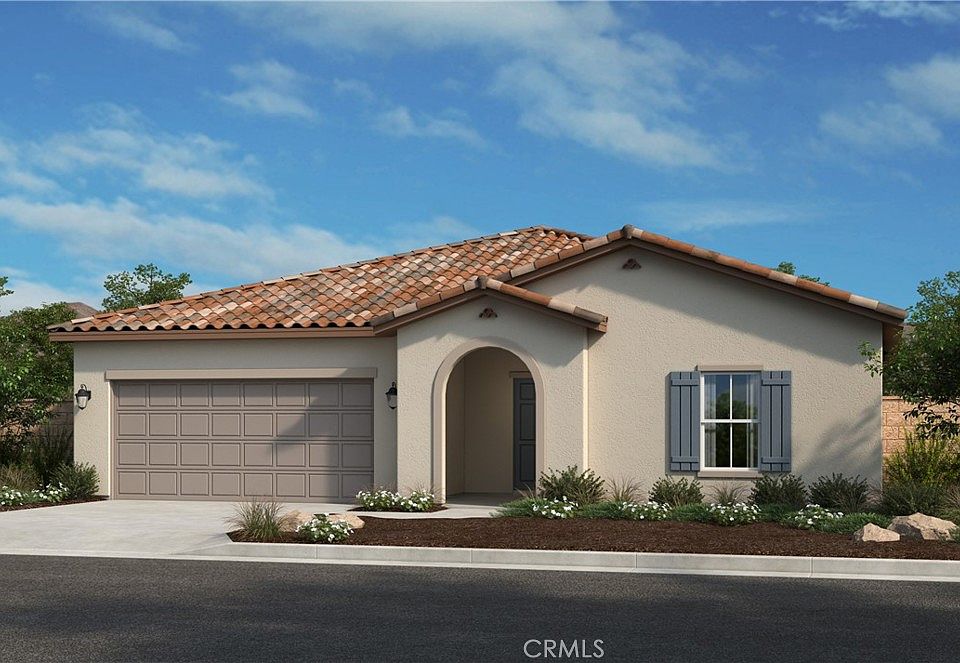 Beautiful Spanish-style, single story home in the breathtaking community of Spring Mountain Ranch. 5 bedrooms, 2 bath home with generous great room is perfect for entertaining, and family gatherings. Large kitchen island, Quartz countertops, energy-star appliances make this home the perfect fit. Located walking distance from 6 acre community park, and multiple hiking trails. Upgraded flooring. Photo is a rendering of the model. Buyer can either lease or purchase the Solar.