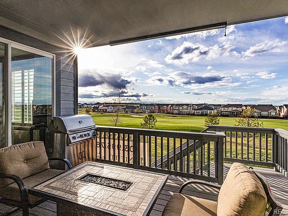 Looking for Stunning Westerly Views that oversee Mountain Tops and the Blackstone Golf and Country Club? Look No Further! Welcome to this Extraordinary Walkout Ranch which backs to the 18th hole on the golf course & is just down the street from the entrance to the English Tudor inspired Country Club. As a former Lennar Model home this property sits on a premier lot & has all the bells & whistles including Solar! This meticulously maintained home is an entertainer's dream; the spacious design perfectly blends the chef's kitchen, dining and great room with an abundance of natural light & access out to the covered deck. The elegant master retreat includes a sitting room, luxurious spa bathroom featuring soaking tub, shower, dual sinks & walk-in closet. The main level Study has direct access out to the deck & offers the ideal in-home office scenario. Host extravagant gatherings in the formal dining room w/ butler's pantry or head out to the custom designed patio and spend the evening around the gas fire pit enjoying all the space around you. You'll appreciate the low maintenance, professionally landscaped backyard w/premium synthetic grass & concrete patio; perfect for enjoying those sweeping views of the golf course. Fully custom Walkout Basement w/ tall ceilings, a charming built-in bookcase, a show-stopping wet bar, 2 guest bedrooms & plenty of space for entertaining. Blackstone Country Club offers residents an incredible array of amenities w/ the social membership or upgrade to the golf membership. The social membership provides access to a fitness center, pool, tennis courts, restaurant/grille, social activities & much more. However, this community is not just for golfers; this fantastic neighborhood sits high w/ views of Colorado's famous Rocky Mountains & is just 5 minutes to Southlands Mall and trails at Aurora Reservoir, 25 minutes to DIA and 35 minutes to Downtown Denver. To top it off - Cherry Creek School District! Come tour this Beautiful Home!