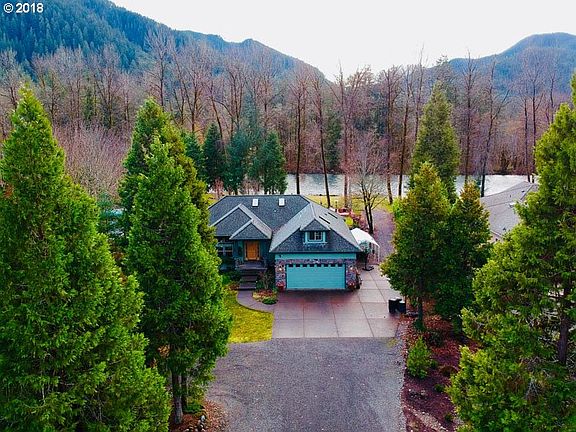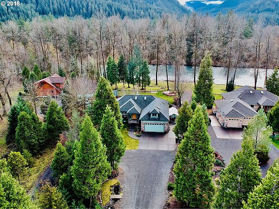 Your piece of paradise awaits in this custom built, privately located riverfront home on .91 acres of level, landscaped grounds w/195' Willamette R & forest beyond. Exquisitely constructed 2,272 S.F., 3 to 4 BR, 2 BA Craftsman home features great rm w/vaulted ceil'g, big windowed views, stunning rock FP hearth/mantle w/propane insert, gourmet kitchen w/island & huge pantry, deck & hot tub. Master BR suite w/ext. access to the good life.
