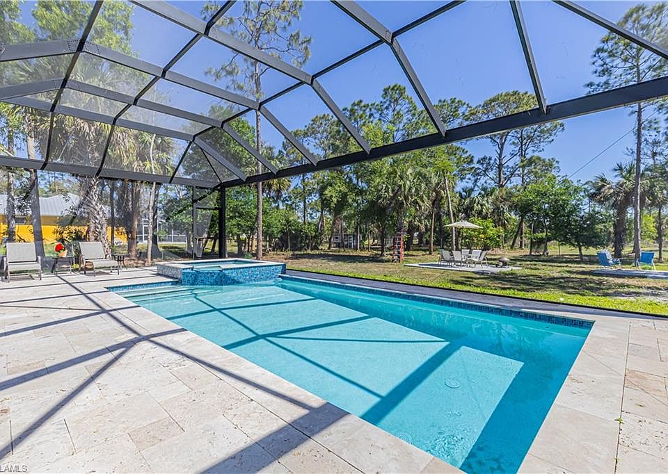 Stunning 4 bedroom pool Home in Naples FL! move -in -ready! Discover this beautiful designed 4 bedroom, 2 bathroom home. Built in 2021 and situated on a 100% UPLAND LOT, near Wilson Blvd. This modern new construction offers an open floor plan, high ceilings, and an abundance of natural light throughout. Enjoy a brand- new custom pool with a spa, perfect for relaxing or entertaining in the Florida sunshine. The specious kitchen features modern white shaker style cabinets, stainless steel appliances and a walk in pantry. This home offers the perfect blend of comfort, style and location convenience. Don't miss out this incredible opportunity-schedule a showing today!
