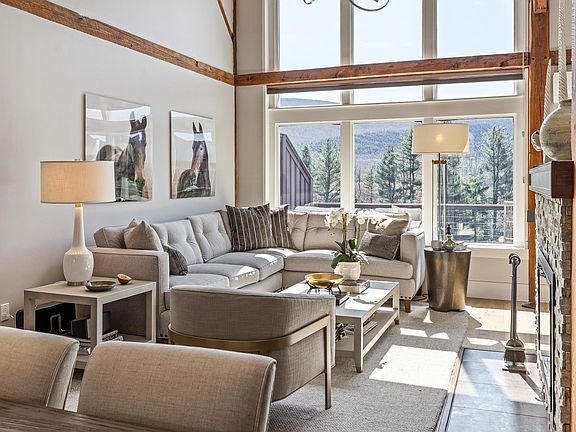 Welcome to a truly exceptional residence where refined design meets effortless comfort. This luxury condo blends sophistication and style with upscale finishes, panoramic views, and an expansive open floor plan. Fully renovated in 2018, the home features engineered hardwood on the first level, 3BR/4BA, and sun-drenched spaces framed by large windows. A striking fireplace adds warmth and charm, while the spacious deck with retractable awning, invites al fresco dining or morning coffee. The chef’s kitchen includes a Subzero refrigerator, Bertazzoni stove, Miele dishwasher, and 96-bottle wine chiller—perfect for a gourmet experience. The primary suite offers a spa-like bath with heated towel rack, radiant floor heat and Smart Toto washlet. Bedrooms are generously sized with ample closet space. The fully finished lower level with LVP flooring is ideal for entertaining. A premier parking space is located near the unit's entry in addition to the one-car garage that provides secure parking and storage. Recent upgrades include new Trex decking with cable railings (2024) and a brand-new metal roof (2022). Showings begin 5/24—Open House 11:00-3:00