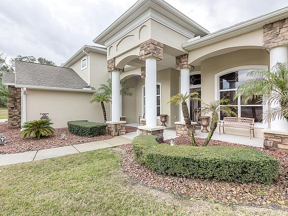 Luxury custom dream home! Come see all the detail and thought into the design of this 3 bedroom 3 1/2 bath, pool home on an acre of land in the heart of Port Orange in driving distance to all of your needs. This home has been meticulously kept since being built. Enter in through the large glass front doors into vaulted foe finished trey ceilings and custom pillars while looking into the back yard pool oasis with spa tub, fountains and out door kitchen. Split floor plan with large master and master bath. With a bonus room with it's own bathroom. Large kitchen, wood cabinets, granite, wrap around bar and eat in nook. All over looking the large family room overlooking the pool from every angle.
