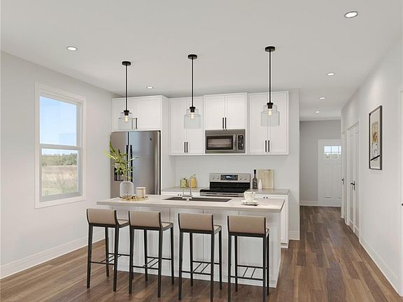 This Tulip plan features 3 bedrooms and 2 bathrooms. The open floor plan concept allows the home to flow seamlessly from the kitchen into the living room. The bathrooms and kitchen feature shaker cabinets and chrome/satin hardware throughout. LVP flooring through the common area and carpet in the bedrooms. Offering up to $10K in closing cost with use of our preferred lender. The easement running behind these homes will be for utility and drainage. Built by Red Cedar Homes