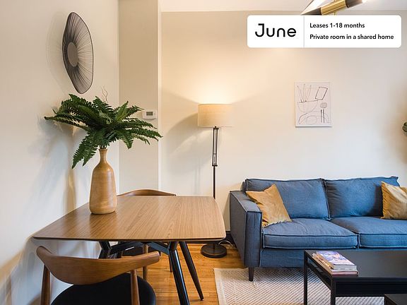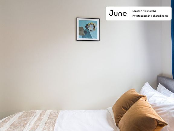This Twin room in Columbia Heights is available on a 12 month lease or a flexible short term (31 to 364 days) lease. You pick your custom start and end date. Monthly rent rate is determined by furnishing preference, move-in date and move-out date. Speak to a June representative for recommendations on the best stay duration for the lowest rate.