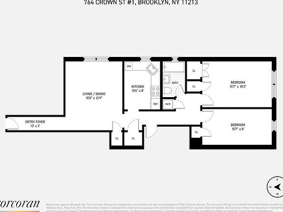 This 820 square foot apartment home has 2 bedrooms and 1.0 bathrooms. This home is located at 764 Crown St UNIT 1, Brooklyn, NY 11213.