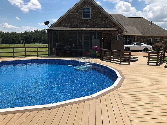 All Brick home. Carpet, tile, Hardwood floors. Basement is stained concrete. Custom builtin entertainment and fireplace surround in living room. Foam insulated. Above ground Pool installed in 2018 with deck surrounding it. Screened in grilling porch joining the pool deck. (23 more acres available for purchase not included in this price.)