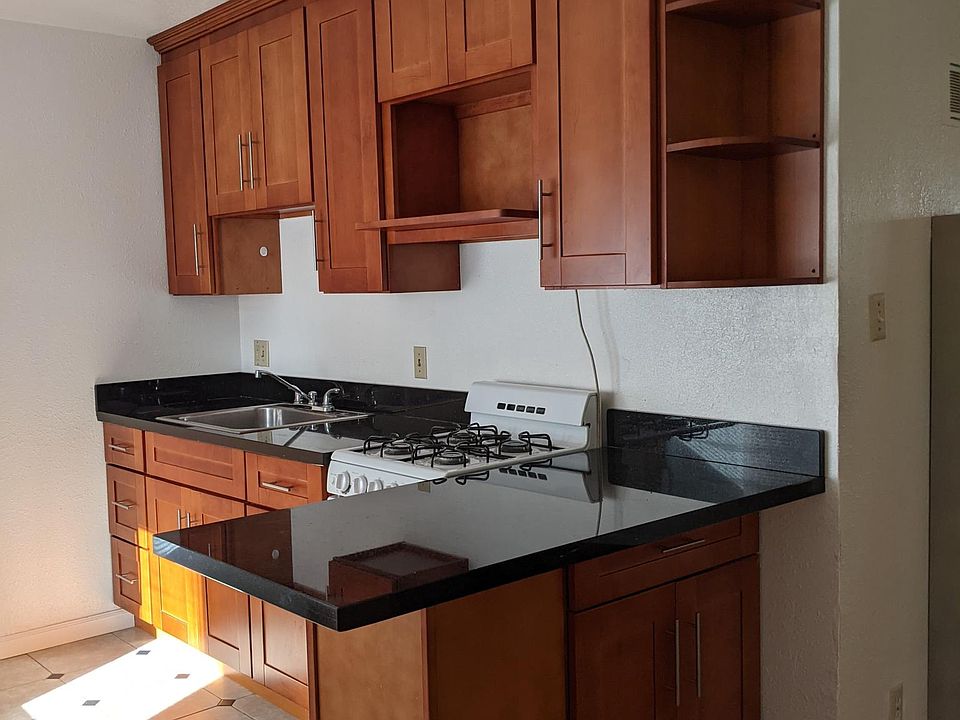 Tastefully remodeled 1 bdrm 1 bath, ground floor unit in quiet, well maintained 11 unit building. Best Oakland neighborhood on tree lined street , Piedmont border. Beautiful new kitchen cabinets and granite counter, recessed lighting, raised panel doors, new laminate flooring. Onsite Laundry, bicycle storage and rooftop sundeck . Perfect location for walking to bus stop, restaurants, Fenton's creamery, coffee shops and movie theater. Walk score of 90! Reserved parking available. Current Credit report & score requested. RENT $ 1875.00, incl. water & garbage and parking. No smoking. Contact us to schedule a showing. Renter pays PG&E.