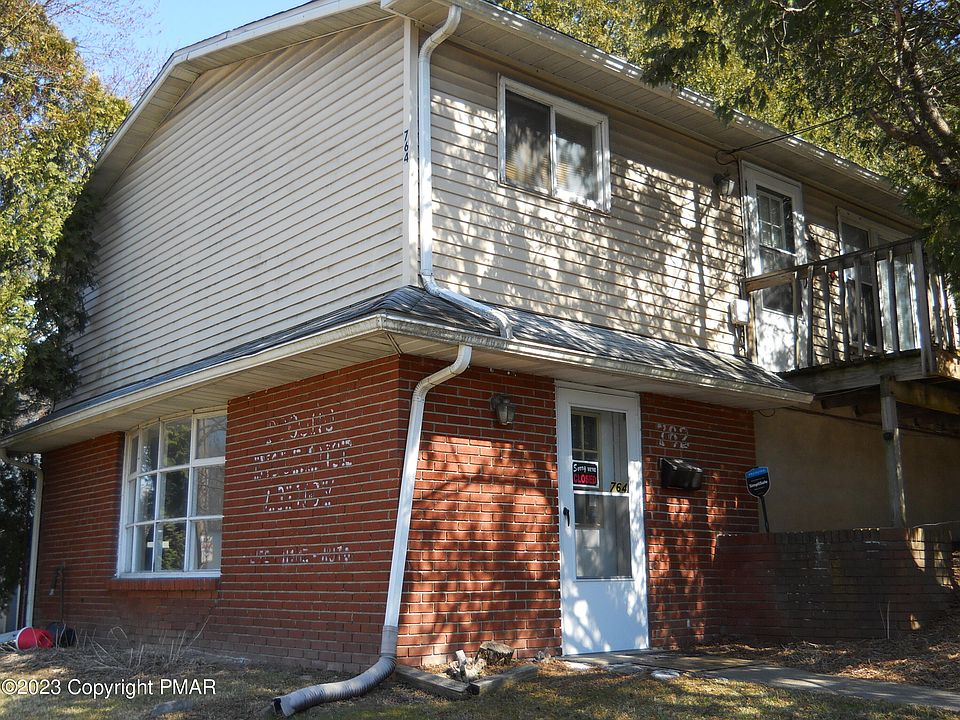 NOT IN SHOWINGTIME CALL OWNER Opportunity to own 2 Apartments & a Store Front on Lower Level w/ Paved On-Site Parking Lot. Located North of Eagle Valley Corners. Apt. of Upper Right offers Large Kitchen w/ Refrigerator & Electric Range. Natural Gas Heat & Electric BsBd Heat. 2 B/R (1 without a closet but has a Clothes Washer & Dryer Installed). Kitchen has Linoleum Flooring, Bathroom has WPV Plank Flooring, Bedrooms and Bathroom has Wall to Wall Carpeting. Front Entry faces Elm Street. Rear Entry faces adjoining property. Front Deck spans 20' w/ a Ramp walkway. Both Apartments are Leased with Long Time Tenants. Lower-Level Store Front was leased in the past. Currently Vacant. Public Water Sewer & Trash. Units are in good condition. Seller is a PA Lic. Real Estate Broker. Being Sold ''AS IS
