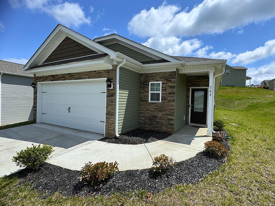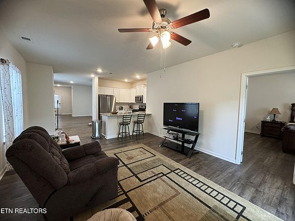 1 Level Living, 1423sqft with 9ft ceilings, is this 2022 Modern Craftsman Style home with 3 BR/2BA and a 2-car garage. Enter into the open concept with beautiful barn looking plank laminate flooring throughout. 1st room is the Dining area, then follow into the Kitchen with Shaker Style Cabinetry and Granite Counter Tops. The kitchen is equipped with a Natural Gas Range, Microwave, Refrigerator, Dishwasher and Disposal. Home also has a Tankless Hot Water Heater, Security System, Cable TV, (Fiber Internet Available). Then continue into the Living Room and then to the left is the Master Bedroom with walk-in closet, Master Bath has a walk-in shower and double vanity. To the left of the front door is the Laundry Room that is coming with the Washer and Dryer. The the door to the garage, To the left of the Dining Room is the hallway to the 2 guest bedrooms and guest Bath. Bathrooms and Laundry Room have vinyl flooring. Home is sitting on a concrete Slab, has a concrete driveway and walkway all on .19 of an acre. This location is so convenient to Cherokee Lake. All ALL shopping and many restaurants. Baneberry Golf Course is just 15mins. I-81 is roughly 10mins.