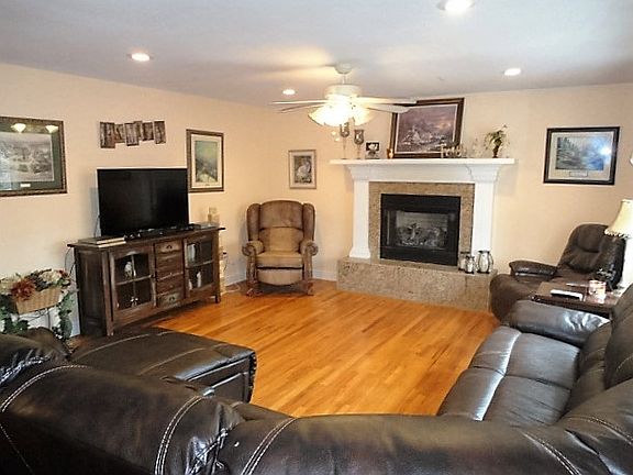 REDUCED to an amazingly low price for a stick-built home this age and size. MOVE-IN READY, NOT A FIXER UPPER - owner just wants it sold quickly! This large ranch style home built in 2003 has a lot to offer. Home is set far back off road and faces trees to maximize privacy. Majority of lot sits in front of the house and is wooded and sloped, but what the house offers compensates for the lack of useable yard. Very private deck in back of home. Built to be handicap accessible and maintenance free. Features include covered front porch area, beautiful hardwood floors throughout (except for newer laminate floor in family room), large living room with fireplace and recessed lighting, separate dining room, kitchen with lots of cabinet space and skylight, family room with fireplace and doors to deck, laundry/mud room, large master bedroom, master bathroom with walk-in shower, good sized 2nd and 3rd bedrooms, and hall bathroom with jetted tub. Oversized 1-car garage with wall of storage cabinets. Home shows well.