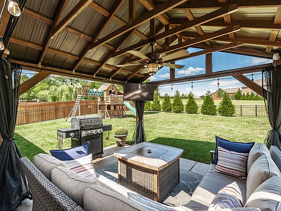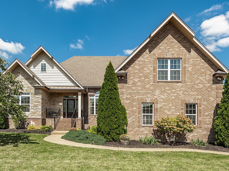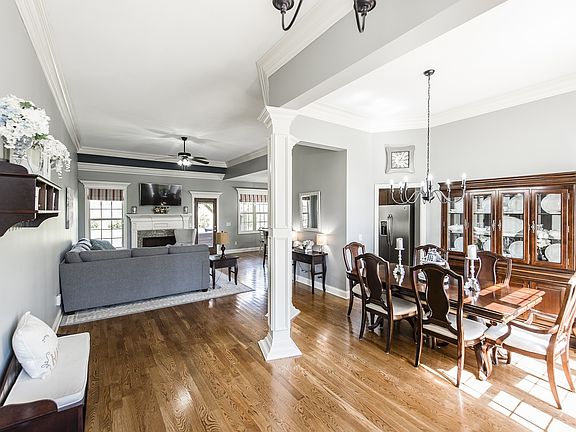 Custom built find! Tucked in the back of the neighborhood! Gorgeous one level, Beautifully landscaped level yard, curved aggregate walk & aluminum fenced back yard! Walk to the neighborhood pool through the back yard gate across common area where no one can build! Enjoy the game and Fall weather under the pergola on the 18x16 patio! Open and fresh Living and Dining Room have 10'10" ceilings with deep crown molding, 5.5" baseboards, columns, 3" Hardwood floors, Gas log fireplace and opens to the breakfast room overlooking the back yard. Granite Countertops, rich custom cabinets, bar, tile backsplash & pantry. Owner's suite with a generous Sitting Room & Double tray ceiling, separate granite vanities, 5' garden tub, new tile shower. Huge 22x21 Bonus Room with lots of light! Excellent Walking neighborhood with sidewalks! Pool & Playground! Black metal fence with 3 gates. Rich landscaping has arborvitae, oak, tulip, maple and chinese chestnut trees. Very nice playset remains with home!