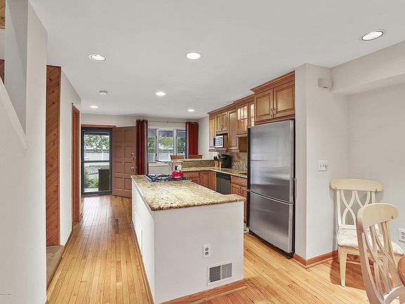 LOCATION! LOCATION! LOCATION! Across the street from the beach and just a few short blocks to the West End Shopping and Dining area this open layout townhouse is perfect for seasonal or year round living. With two bedrooms, 1 full bath upstairs and an additional bedroom, bath and bonus room room in the finished basement this home is perfect for those wanting separate living spaces. The updated kitchen provides an open view to the dining room and living room and allows for natural light to shine through. Large center island and bar height counter seating. Newly finished hardwood floors on the main level. Newer sliding doors. Carport for 1 vehicle and plenty of additional parking. Maintenance fee includes, common area, trash removal, snow plowing & water. TV over fireplace included.