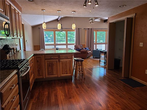 Treat yourself to the best of both worlds - house on a golf course with a deeded 1/4 interest lake access! This beautiful home features 3 bedrooms, one being a large master bedroom with frenchdoors that lead out onto the private deck. Master bath features dual sinks, soaking tub and oversized shower and walk in closet. The kitchen has been updated and perfect for the chef enthusiast. The kitchen features custom cabinetry, tile backsplash and a breakfast bar. This house is perfect for entertaining with the open concept kitchen/living/dining room complete with hardwood floors. The finished basement features a bar, living room and 1/2 bath. The patio is perfect for grilling out or a morning cup of coffee complete with a retractable awning.