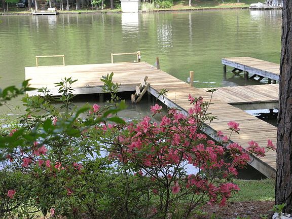 Great house for entertaining on Lake Sinclair. 3 Story A-Frame, 4 bedrooms & 3.5 Baths. Master is on the main. Fully finished In-Law or Teen suite on the Terrace Level with 2 Br & bath plus a Kitchen. Covered patio also on the Terrace Level. Nice guest suite on the 3rd floor with on-suite bath. Large Workshop with abundant storage on the lakeside with its own deck. Max dock, over 6 feet water depth, seawall, with a sandy beach and ramp for putting in Kayaks or for small kids to play on. Paved driveway from the road to the house with room for several cars to park.