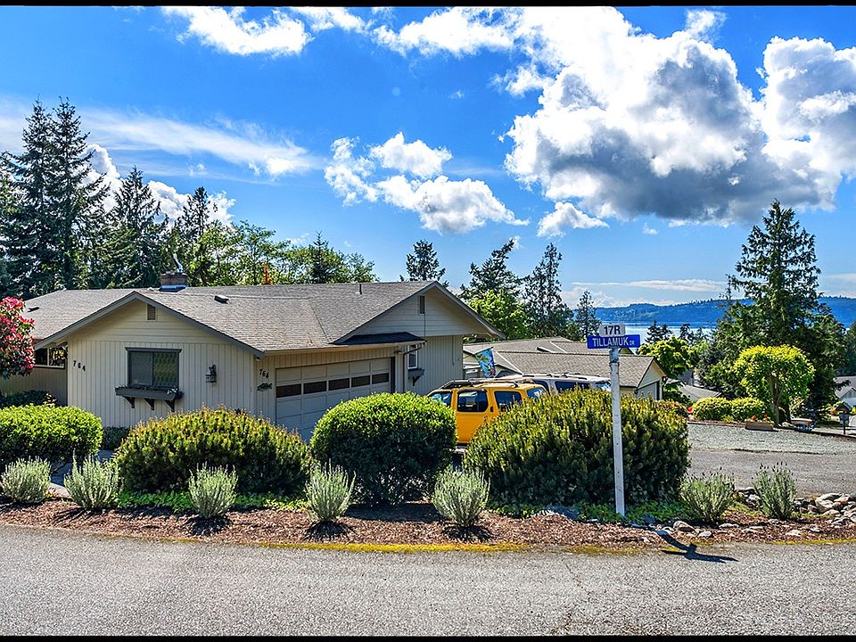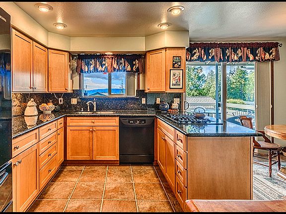 CUSTOM BUILT WATER VIEW HOME with remodeled kitchen featuring a double slider opening to a massive deck with fantastic views new Jenn-aire gas cook surface granite counter tops walk-in pantry. two living rooms both with fireplaces, sewing/hobby room. Enter the lower level from the main or use the separate outdoor entrance which has room for a 4th bedroom or other uses. Remodeled bathrooms new vanity and granite counter tops. Shop. Fenced private back yard. 2-swimming pools, marina, boat launch, tennis crts, par 3 golf course, 2-pvt beaches