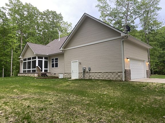 Stunning setting..for this modified farmhouse style 2 story home w/partially wrap around front porch, ideally suited for colorful summer outdoor furniture and greenery!! Welcoming entry, beautifully landscaped to accentuate both the natural surrounding and add color and style to the home setting. Great room w/tray ceiling and exposed wooden beams, decorative free standing heater in great room, open kitchen w/huge work island/breakfast bar, white cabinetry w/white backsplash, SS appliances, induction cooktop, and under counter lighting. formal dining area, main bd ensuite on main level, also office & another full bath. 2 bds & full bath upstairs, pantry/storage closet, laundry w/some upper cabinets, screen porch off great room with view of natural woodland in back. Tile walk in showers, high ceilings, lots of windows for natural light, paved walkways, privacy yet not remote...all this and more!!