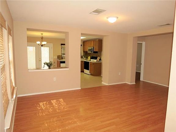 Super cute and well maintained home! Many recent big ticket items recently done including HVAC, Double French doors with enclosed blinds, Arbor covered enclosed deck with gate, Water heater, wood privacy fence, and roof shingles all done since 2012. Extensive wood laminate flooring throughout living, hallway and all bedrooms. Nice open living/dining/kitchen area ~ perfect for family time or entertaining. Nice landscaping/trees.
