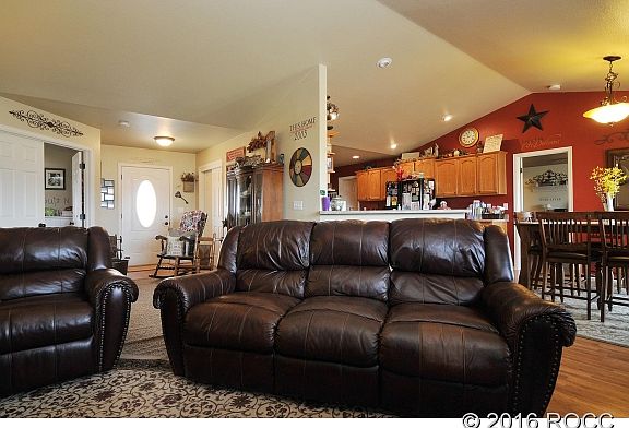 Lovely 1608 SF home in Meadowlark Subdiv. Meticulously maintained & move-in ready. Open floor plan; Designer colors. Spacious master suite + 2 bedrooms & 2nd bath. Kitchen with plenty of work space. 3-car attached garage. Plenty of play space on 2 acres. Water rights through HOA via scheduled irrigation. Augmented well.