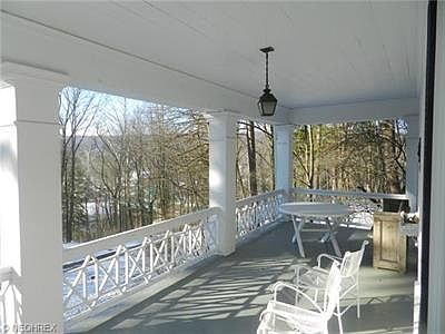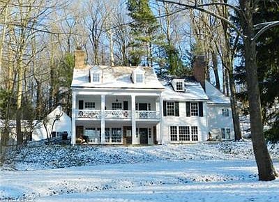 Designed by Monty Copper in the style of a Southern river home, 7640 Old Mill Road features twin tiered balconies with stunning views of the Chagrin River. The home sits down a long drive nestled in trees, for privacy and serenity. The porches let in the view and offer cool breezes when you're not using the homes central air in summer or zoned heat in winter. The home features three grand fireplaces. The Living Room fireplace is set with antique tiles in a wall with wood paneling, built in bookcases and elegant Grecian Key molding. The large hearth fireplace in the Family Room with its "beehive" oven compliments the rustic brick flooring and plaster walls. The Dining Room, with wide plank wood flooring is warmed by a third fireplace with detailed mantle and surround. The kitchen has been renovated with granite counters, an eat-in breakfast bar, Jenn-Air range with grill and wide farmhouse sink. The five bedrooms are well placed for privacy and quiet and all offer wood floors and walk-in closets. The Master is light-filled and gracious. Upstairs bedrooms have airy dormers that add to their charm. This distinctive home sits in the heart of Gates Mills, with wonderful access to community events and amenities. A true gem!