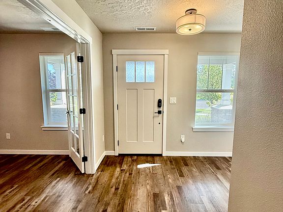 Here is your opportunity to rent a home in the desirable Charter Point community, offering not just a home but a lifestyle with access to an elementary school, parks, common areas, pool, clubhouse, gym and more. This spacious 3-bedroom plus office home is designed for comfort and low maintenance. Located on an alleyway with a common area on one side and an open field in the back, you'll have plenty of space to enjoy. Landscaping is included! Step inside to find thoughtful upgrades throughout. The main floor has no carpet, featuring an open-concept kitchen, living, and dining area filled with natural light. The kitchen boasts quartz countertops, a gas range, a large pantry, and plenty of room to cook and entertain. A custom built-in shoe rack in the entry closet is a nice bonus. The wide 2-car garage provides ample storage, and there's an additional large storage space under the stairs perfect for holiday decor or seasonal items. Upstairs you'll find all the bedrooms and the conveniently located laundry room. The primary suite is a true retreat, offering a spacious bathroom with dual vanity, walk-in shower, and your dream closet featuring custom shelves, built-in dressers, and even a window for fresh air. Enjoy the outdoors in the private side yard, complete with low-maintenance astro turf, a covered patio, and charming Edison string lights ideal for relaxing or entertaining. Tenant is responsible for all utilities No past evictions Pet policy is negotiable