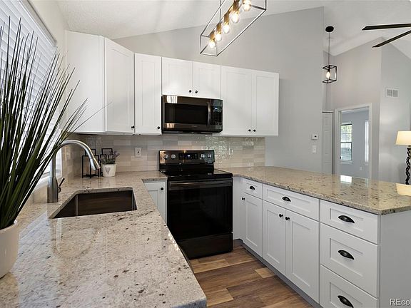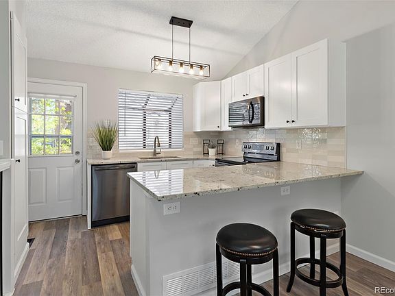 Incredible ranch-style end unit in a beautiful community! This completely remodeled home lives large with the open main floor, vaulted ceilings and lots of natural light. The brand new kitchen has white cabinets, slab granite counters and new stainless appliances. Gorgeous new flooring and paint throughout! The living room has a fireplace with designer tile surround. Both bedrooms have vaulted ceilings and great closet space. The full basement is partially finished with a laundry area and new 3/4 bathroom and is ready for you to complete it as you like (there is an egress window for a bedroom or make a huge family room, home office or?). Enjoy the summer on the huge private back patio. LOCATION!!! Walking distance to Arapaho Park, shopping, restaurants and South Suburban golf course. This really is the place you will want to call HOME!
