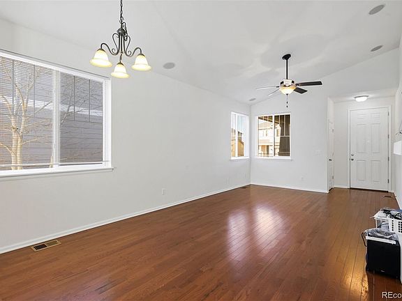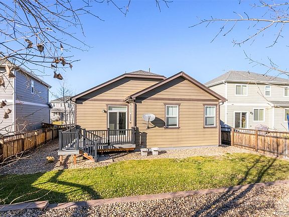 ***PRICE DROP***This meticulously maintained Ranch located in Desirable Cobblestone Ranch offers a light-filled, open-concept floor plan. Upon entry from the covered front porch, is a family room with vaulted ceilings with gas fireplace, which expands to the dining area and kitchen. The kitchen features plenty of counter space and island complete with seating, beautiful cherry cabinets, granite countertops and a pantry. From the kitchen you walk out the sliding glass door onto a Trex deck with room for outdoor living and entertaining. Continue to flow-through the main floor to the oversized, peaceful master en suite that features a walk-in closet and adjoining 5-piece bathroom. Two additional spacious bedrooms, a 2nd full bathroom and laundry area finish off the main level. Home comes complete with a built-in surround sound speaker system. Plenty of storage can be found in the accessible crawl space below the main level that is completed sealed with a vapor barrier. Ideal location in a quiet community, near Cobblestone Park, Bayou Gulch Regional Park, extensive trails, schools, community pool, tennis courts and clubhouse. Quick and easy access to Hwy 83 to Parker and access to Castle Rock. Just move in, relax and enjoy this cozy home.