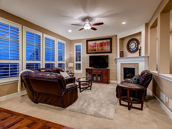 Enjoy Colorado living in this beautiful 4300+sq.ft. home in the quiet Canyon Rim at Castlewood Ranch neighborhood. Sitting on a private fenced 1 acre lot surrounded by views, natural vegetation and thoughtful landscaping. Hand scraped Acacia hardwood floors, cherry cabinetry, deluxe granite w/over-sized island and SS complete the gourmet kitchen open to family room. Don’t overlook the quaint nook w/charming window seat or formal dining. Sunlight filters in the large windows throughout. Office enclosed by French doors for privacy. 2nd floor laundry conveniently located. Luxurious master suite w/5 pc bath, custom tile, granite and large walk in closet. Enjoy a workout, or movie in the finished basement w/hardwood floors. Basement bed/bath provide privacy for guests. Outdoor living is equally as impressive from the covered porch to sunsets in the secluded hot tub. The over-sized 4 car garage will please any enthusiast. Energy Star Certified Home. Walking distance to schools/parks/trails.