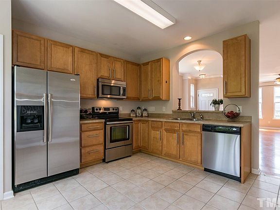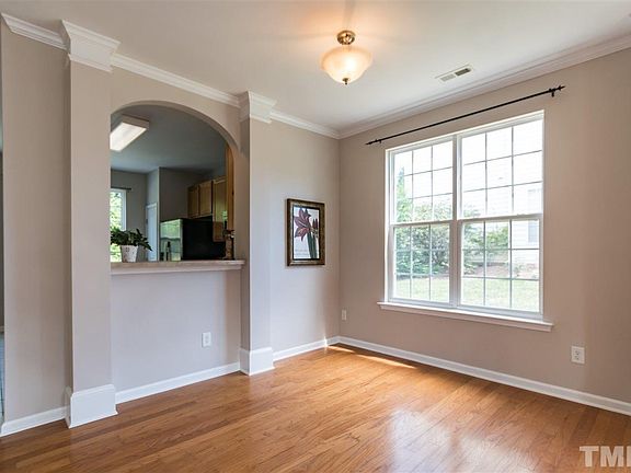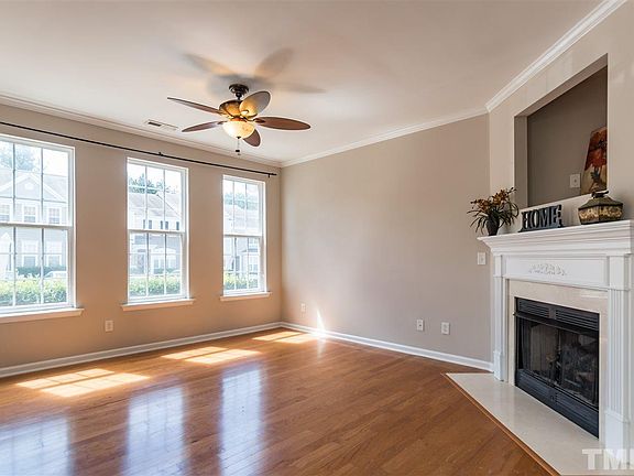 End unit in popular Brier Creek w/quick access to I-40/540/RDU & RTP. Upgraded features include HARDWOOD FLOORS, crown molding, gas fireplace with marble surround, stainless appliances including smooth top stove, tile floors in kitchen, 42" maple cabinets, FRESH PAINT FIRST FLOOR, vaulted master w/ walk in closet & garden tub. Secondary bedroom makes a great guest suite with private full bath and walk in closet. Oversized back patio. Pool & Clubhouse Included in HOA dues.