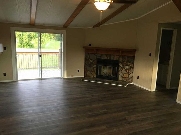Beautifully updated home in peaceful country setting. New Flooring, windows, plumbing, dishwasher, sliding glass door, light fixtures, vanities and more. New paint throughout. Cathedral ceiling in living room and vaulted ceiling in large master bedroom. Wood burning fireplace. Huge 41'x10' deck in back for entertaining. Covered patio in front. 1.04 acre level lot with fenced in back yard. Two sheds for extra storage. First shed is 12'x16' with upper storage area as well and second shed is 10'x16'. On permanent foundation. Buyer to verify s.f. Owner/Agent.