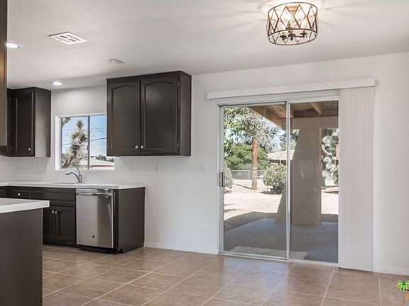 3 bedrooms and 2 bath home with tremendous curb appeal, attached 2 car garage. BRAND NEW AC/FURNACE UNIT, TILE floors, QUARTZ kitchen counter, STAINLESS appliances. You will be thrilled by the quality of the NEW bedroom carpet, mirrored wardrobe doors, NEW bathroom vanities, toilets, lights, and tile! NEW lighting, ceiling fan, window treatments. Entire house INSIDE AND OUT has been painted! All that, PLUS a HUGE 20k+ lot with a separate gate. PLUS, a fully fenced back yard. PLUS a separate swamp cooler to save on electric bills! Great back patio. Great use of space - very open and airy and filled with light! All this and only 15 minutes to Joshua Tree, Pioneertown where "famed" Pappy and Harriet's is located, 30 minutes to Palm Springs, Outlet Malls, Casinos. You won't need to do a thing....just move in and start enjoying all the High Desert has to offer!