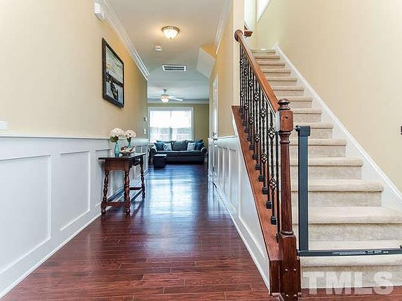 This like new home is neatly tucked away in the Bryson Village Community where you are in close proximity to I540, shopping, and dining. The home has 3 bedroom, 2.5 bathroom home, a gas log fireplace, granite kitchen counter tops, a breakfast bar & tile backsplash. This home is waiting for the perfect buyer. It will not last long.