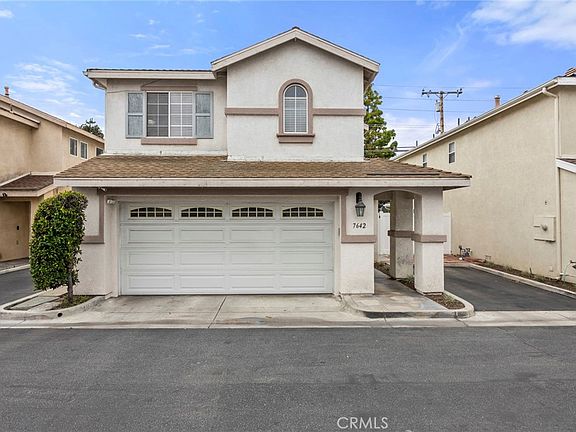 Introducing 7642 Nancy Lane! Located in the heart of Stanton this home offers 3 bedrooms, 2 1/2 baths, a 2-car garage, and plenty of living space. Upon entering, you will be greeted by a spacious living and dining area with direct access to a large patio area, perfect for entertaining. The spacious kitchen has ample counter space and cabinetry for preparing meals. This property also features three spacious bedrooms with plenty of privacy and comfort. The main bedroom suite offers an oversize bathroom with a walk-in closet and double vanity. Enjoy the convenience of an upstairs laundry room as well as plenty of storage space throughout the home. Step outside to your own private patio space ready for outdoor dining and relaxation. Located near Knotts Berry Farm, Soak City, shops, restaurants, schools, and more. Don't miss out on the opportunity to make this home your own! Low HOA!