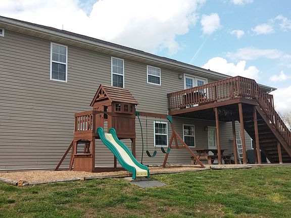 1.4 acres in West Plains School District. Open floor plan, vinyl tilt windows, two car garage, covered front porch, rear deck with covered patio below, full finished walkout basement, above ground pool with deck, in-ground dog fence, lawn mower shed, play area with swing set, vinyl siding with Cobblestone foundation and accents. Home is located in Eagles Landing subdivision which is outside of West Plains City Limits. Quiet country setting 2 miles down BB Highway.