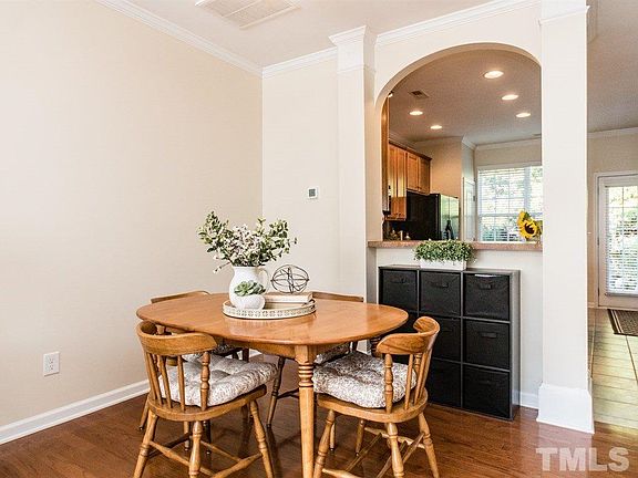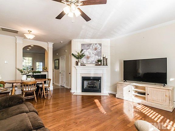 Ready to get rid of those winter blues? This is the perfect bright & sunny home to do just that! Ideal location right in the heart of Brier Creek near I/40 and 540, RTP, RDU. Move in ready w/ hardwoods, crown molding entire 1st floor, cozy corner fireplace & open floor plan. NEW HVAC! Kitchen includes custom island, tile floors & backsplash, black appliances INCLUDING side by side refrigerator & recessed lighting. Vaulted master w/ garden tub. Private back patio & extra storage.