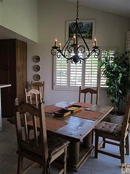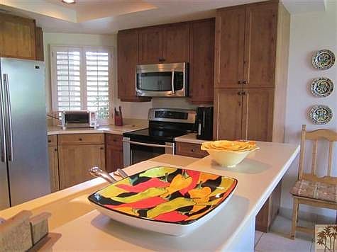 Welcome to the FUN CLUB. . .Palm Valley! This outstanding Cottonwood with 3 Bedrooms or 2 Bedrooms and a Den has panoramic views of the San Jacinto and Little San Bernardino Mountains and overlooks the 16th green of the Challenge Course. From the patio relax and enjoy the evening sunsets, fountains and the morning golfers. Stainless steel appliances, ceiling fans, shutters, remodeled baths with raised counters, a walk in master shower with glass block all add to the beauty of this condo. The finished garage has a roll up door and epoxy floors. Beautiful neutral ceramic tile throughout with the Master and Guest Bedrooms being carpeted. Palm Valley Country Club is one of the best values in the desert and boasts two 18 hole Ted Robinson golf courses, 16 tennis courts, 46 pools and spas throughout the community and a 100,000 square foot Club House with a fantastic gym and full service spa facility and an Olympic pool. There is no Food or Beverage minimum and no initiation fee for homeowner Brokered And Advertised By: Palm Valley Country Club Onsit Listing Agent: Vicki Forswall