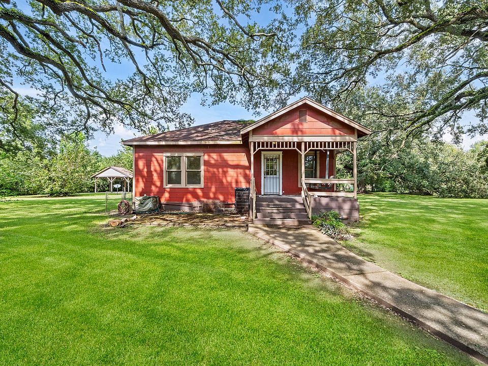 Set on 3 acres in the growing city of Manvel, 7643 Dalmolin Road offers both charm and opportunity with a 1,000 sq. ft., 2-bedroom, 1-bath home featuring original hardwood floors, a newer AC unit (2019), and vintage details like a drop-down ironing board in the kitchen. While in need of some repairs, the home provides a solid foundation to update or expand, and the property is enhanced by five mature oak trees, a lemon tree, a pear tree, and two storage sheds. With plenty of room for gardening, livestock, or future projects, this property combines peaceful country living with convenient access to Hwy 288, Pearland Town Center, shopping, dining, and more—all within the highly regarded Alvin ISD.