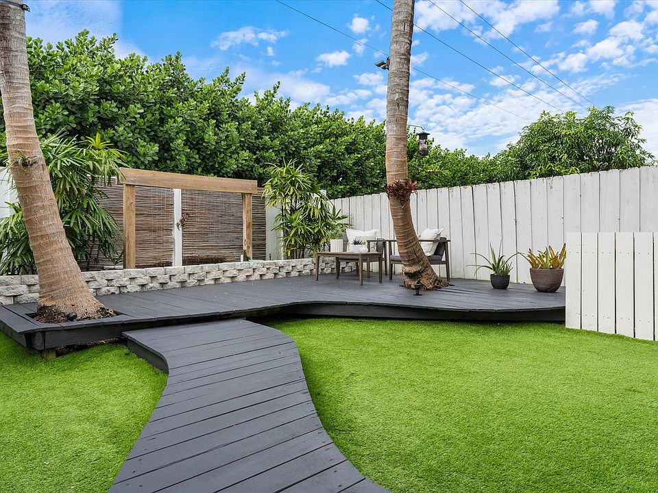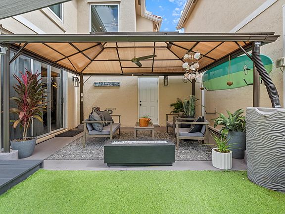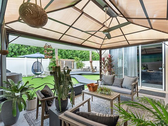 Come home to that Zen feeling! As you enter this beautifully maintained home, you're immediately welcomed by a large impact picture window framing the serene view of a custom waterfall feature in the fun and inviting backyard--perfect for both relaxation and entertaining. Beyond its calming ambiance, you can rest easy knowing your home is protected. The home offers peace of mind with multiple layers of storm protection. The roof was installed in 2021, and the windows are secured by a combination of impact windows (installed in 2022) and accessible shutters. For added assurance, a portable, dual-fuel, whole-house generator is included, ready to plug and power your entire home in the event of an outage.