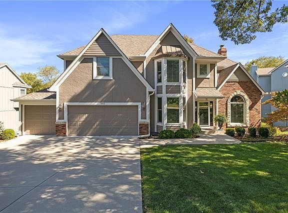 It's a 10 !!!! Meticulously maintained and upgraded with quality features ! Almost original owner ! Fabulous upgraded kitchen with professionally refinished cabinets, granite countertops, GE Monogram built in oven & microwave, Bosch Dishwasher. Island w/ gas cooktop. Light & sunny breakfast area with transom windows. Newer Pella patio door opens to 12x24 Deck and Treed East backyard ! 9' ceilings. Main floor hardwood floors except living room. Spacious Master Suite with Updated Master Bath. Newer Shower, Granite Counters, Tile floor. Double door offers privacy for early risers. Vaulted Ceiling. Skylight. All generous sized bedrooms. Shared oversize hollywood bath with separate vanity areas. One with private bath. Finished Walk Out basement 9' ceilings with Custom Bar Area. Unbelievable exterior upgrades. All siding replaced with Certain Teed fiber cement board (similar to Hardie board) except front which was replaced with a Stucco type siding. Gutters replaced with 5". Full 3 car driveway and sidewalk. Front windows replaced with Pella windows. Roof shingles are Architectural hail rated. So many upgrades include door hardware, faucets, Kohler tall toilets. Newer Carpet throughout. Designer carpet on stairs. Truly an AMAZING home ! You will not be disappointed. Neighborhood Pool ! Close to Parks and Walking Trails. Easy access to 435 and the Lenexa City Center with numerous entertainment facilities and restaurants.