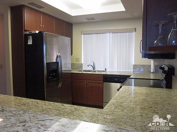 Beautiful remodeled Palo Verde. Nicely decorated. Kitchen has granite counter tops with stainless steel appliances. The breakfast bar opens up into the living area. Master bedroom closet has built in shelving. Elevated views overlooking Championship Course. Great location with amazing views of mountains, water, palm trees. A one bedroom condo that feels spacious. Condo available furnished. Palm Valley Country Club offers dining, 2 Ted Robinson designed golf courses, 16 tennis courts, a 100,000 square foot club house, athletic club with fitness programs, day spa, hair salon, sauna, and a kids club. There is no food or beverage minimum and no initiation fee for home owner. Just minutes from shopping on El Paseo and dining on restaurant row. Please come and be a part of Palm Valley Country Club. Better known as the FUN CLUB!
