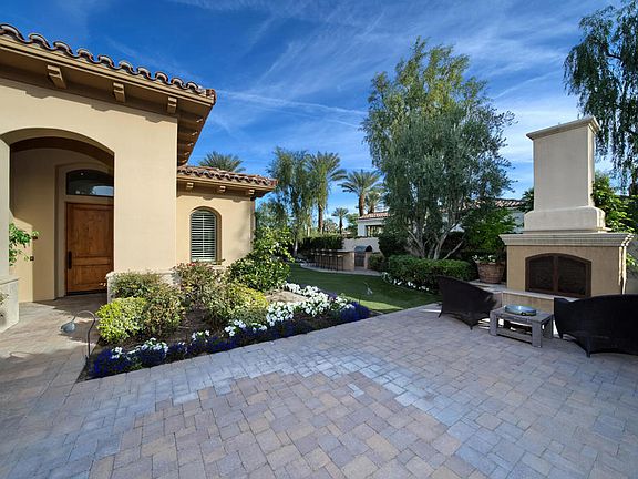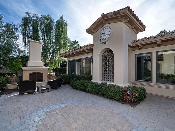 This stunning home in the exclusive Toscana Country Club offers the ultimate in desert living, with breathtaking, unobstructed views of the 6th green and fairway. Positioned on a sought-after Bellagio lot, the residence is thoughtfully updated to provide both style and comfort. The spacious interiors feature sleek new countertops and an updated fireplace, creating a warm and inviting atmosphere. The kitchen is a true highlight, with an updated kitchen hood and refined finishes, making it perfect for both everyday living and entertaining. Enjoy seamless indoor-outdoor living with two sets of pocket sliders that open to the expansive outdoor living space, ideal for enjoying the serene golf course views while entertaining guests or relaxing in privacy.In addition to the main home, a large custom 2-bedroom casita with a separate sitting room provides ultimate privacy and comfort for guests. The casita features its own well-appointed bathroom, ensuring both convenience and privacy for visitors. Outdoors, the property offers exceptional space for entertaining, with mature landscaping, a beautifully designed courtyard, and a tranquil ambiance that blends perfectly with the surrounding views. This home offers an unparalleled combination of luxury, timeless design, and the best of desert living. With every detail thoughtfully considered, it is the perfect place to relax, entertain, and embrace the beauty of the desert lifestyle.